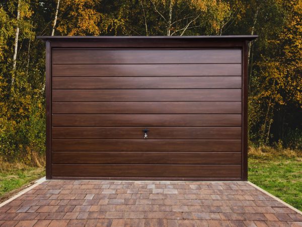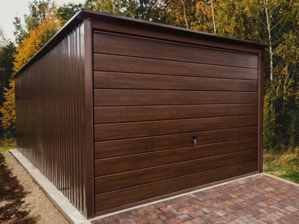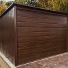 A 3m x 5m (9ft 10.11in x 16ft 4.85in) metal garage in a combination of colors – Brown (RAL8017) and Walnut
